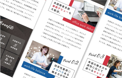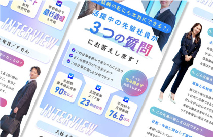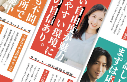 ターゲットに響く求人広告を制作。媒体特性を活かした原稿とデザインで、応募意欲を高め、企業の魅力を効果的に伝えます。目を引くクリエイティブで求人広告を際立たせ、採用活動の成功を強力にサポートします。